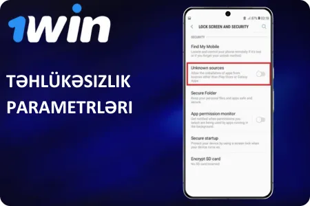 1Win tətbiqi Google Play-də mövcud olmadığına görə, APK faylını quraşdırmaq üçün təhlükəsizlik parametrlərini dəyişməyiniz lazımdır. Təhlükəsizlik parametrlərini dəyişmək üçün aşağıdakı addımları izləyin: